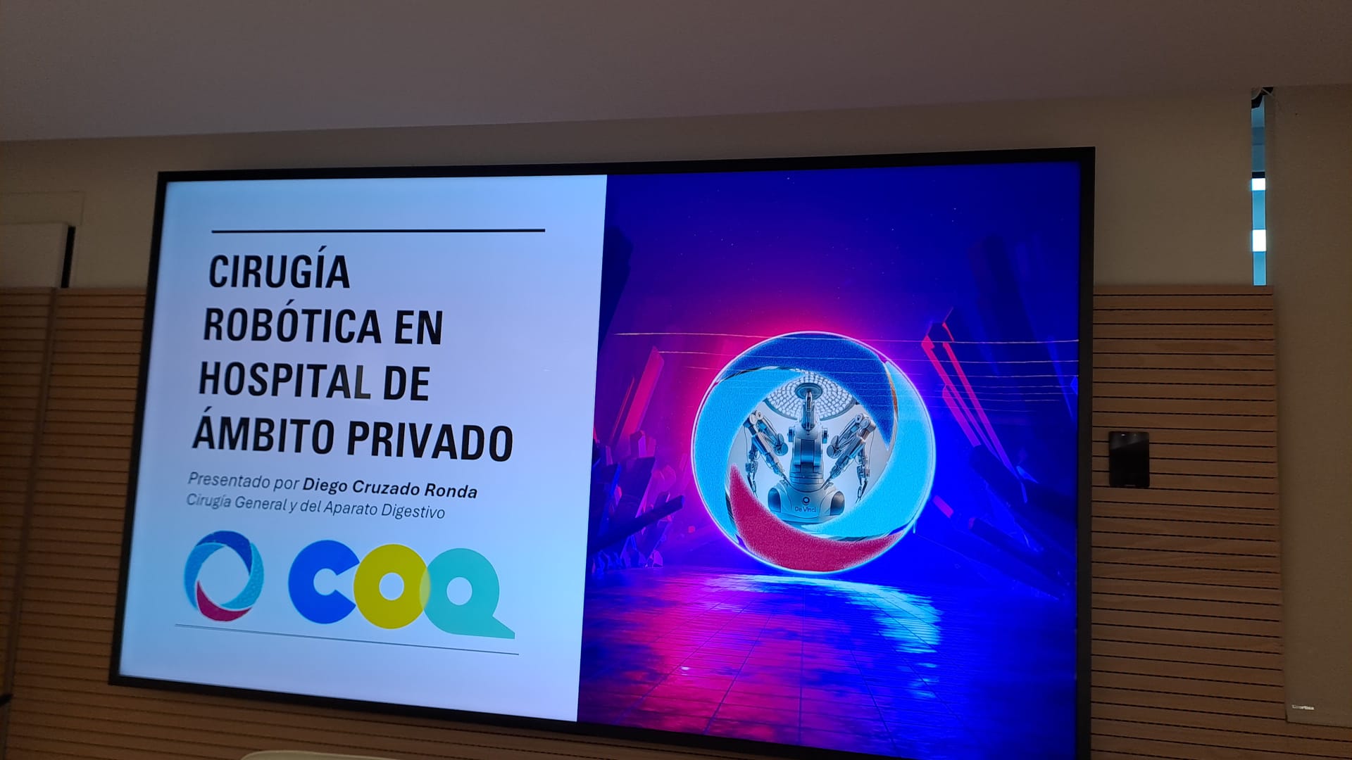 El Dr. Diego Cruzado Ronda , miembro del Servicio de Cirugía del H.U. HLA Moncloa, expuso el tema : Cirugía Robótica en un Hospital de ámbito privado.