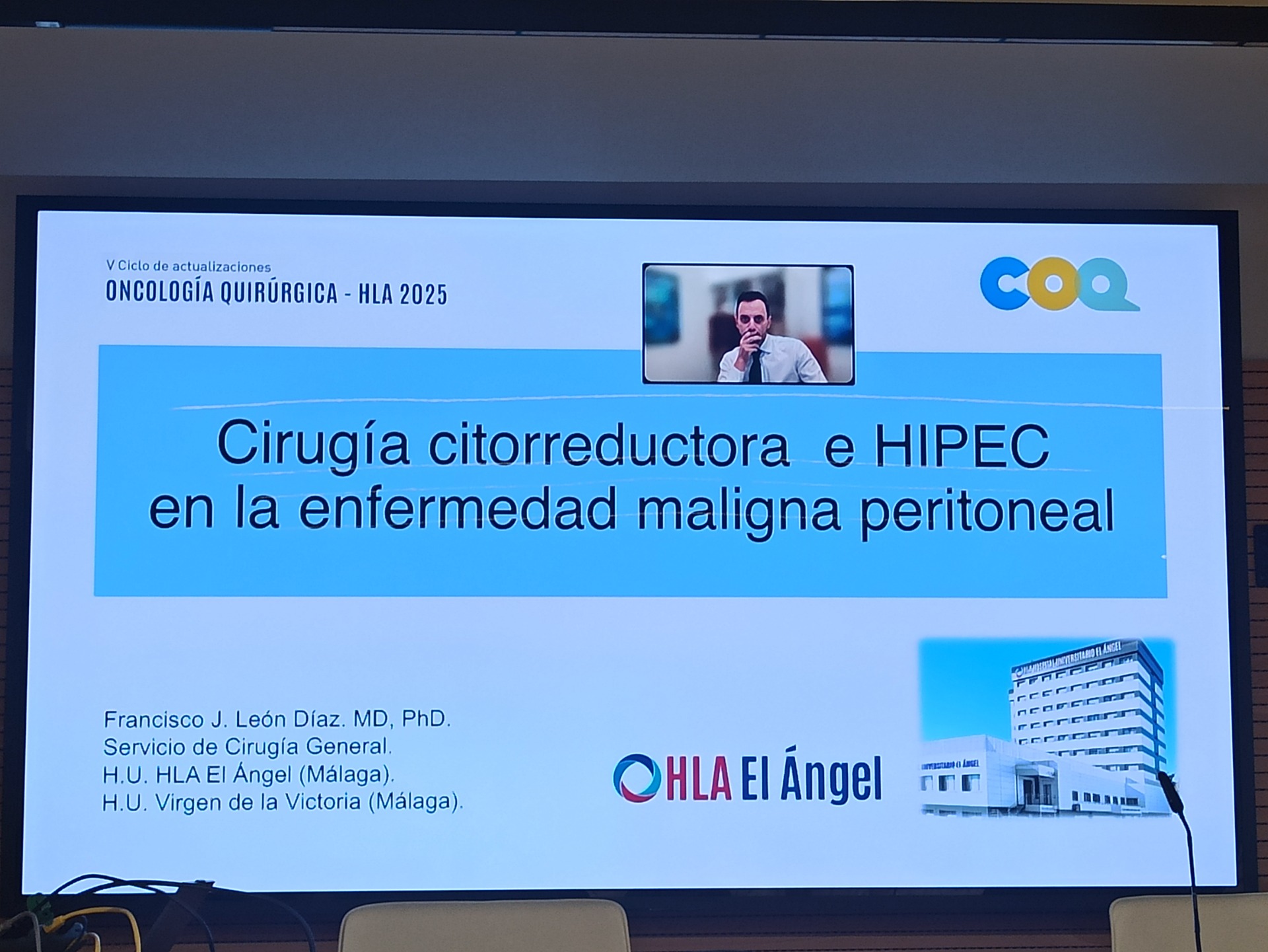 El Dr. Francisco León Díaz, del Servicio de Cirugía General del H.U. HLA El Ángel (Málaga), hizo una exposición actualizada y didáctica sobre: "Cirugía citorreductora e HIPEC en la enfermedad maligna peritoneal".