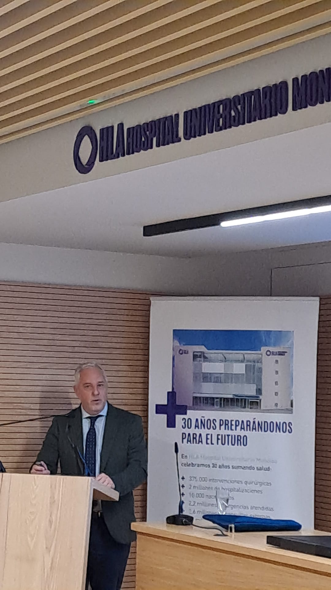 Presentó al ponente, Dr. José Manuel Fernández Madrid, Jefe del Servicio de Cirugía de dicho Hospital, el cual impartió la conferencia: " IA en Oncología Quirúrgica: ¿complemento o herramienta esencial?, a la que puede accederse a través del video que se adjunta.